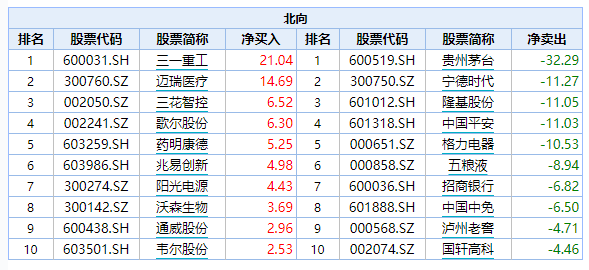 此外,北上资金还净卖出隆基股份、中国平安、格力电器等个股。
