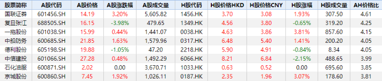 个股方面,国联证券、复旦张江、一拖股份、中船防务、德利股份、中信建投、石油化服、京城股份等个股位列沪港通溢价榜前列,投资者可关注相关个股估值回归机会。