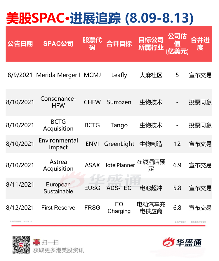 在过去的一周,共有7家值得我们关注的SPAC合并上市公司。