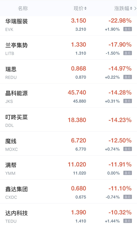 (截图来自新浪财经APP 行情-美股-中概股热门板块)下载新浪财经APP