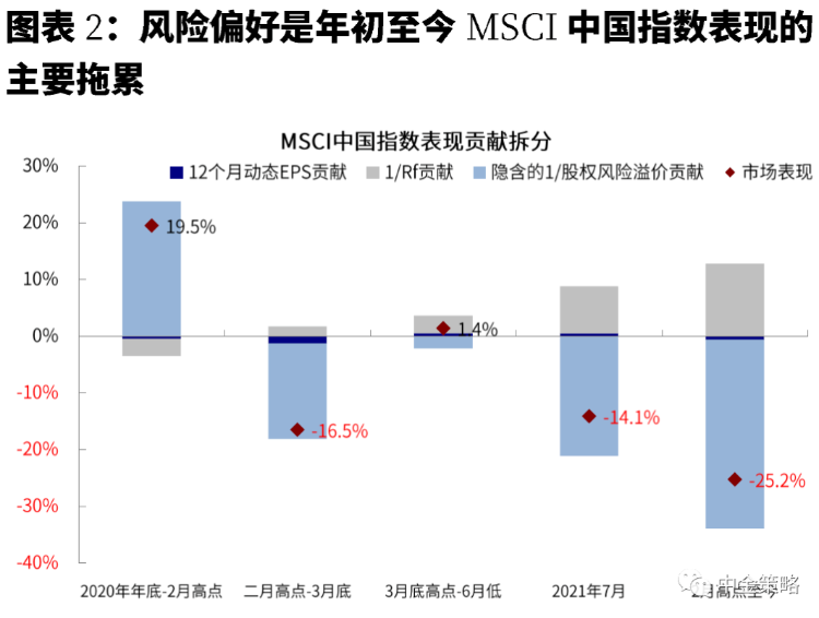 港股自二月中高点以来整体下行,特别是7月底因政策监管担忧引发新一轮恐慌性抛售,使其大幅跑输全球市场,表现垫底。高点以来,首当其冲的恒生科技指数大跌39.8%,MSCI中国回调26.1%,恒生指数跌16.1%、国企指数下跌23.3%更是一度逼近去年疫情期间低点。