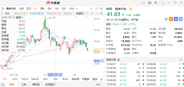 华盛资讯8月16日消息,今日美股盘前,中概新能源汽车股美股盘前走低,小鹏汽车(XPEV)跌4.3%,蔚来汽车(NIO)跌3.49%,理想汽车(LI)跌3%。日前知名企业家“萌剑客”驾驶蔚来ES8遇车祸离世,蔚来“自动驾驶”遭质疑。