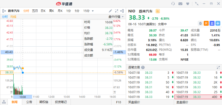 华盛资讯8月16日讯,美股盘初,中概新能源汽车股走低,小鹏汽车(XPEV)跌7.12%,蔚来汽车(NIO)跌超6%,理想汽车(LI)跌3.5%。