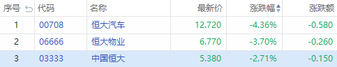 华盛资讯8月17日消息,港股恒大系午后持续下挫,截至发稿,恒大汽车跌4.36%,恒大物业跌3.7%,中国恒大跌2.71%。