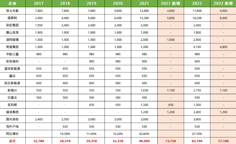 光伏玻璃部分厂商产线规划,有望2023年之前投产