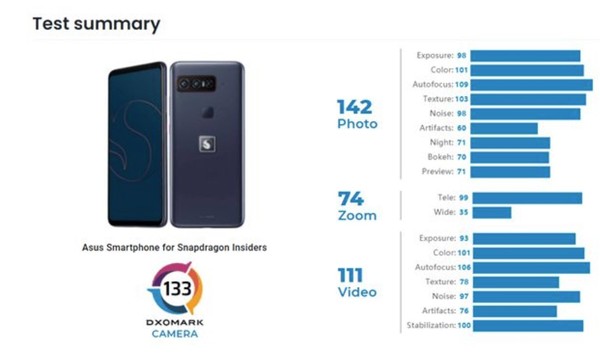 不过高通针对这一得分作出了以下回应,第一,这台手机使用高通最新的软件和基线,带有高通的多帧降噪、运动补偿、电子防抖和HDR等功能。第二,这台手机在CMOS和镜头上和一般华硕手机有区别。第三,有来自特定合作伙伴的软件功能,例如虹软、Almalense,并且高通相机团队也参与调校。最后该机带有ToF技术。