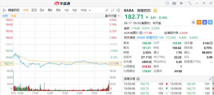 华盛资讯8月17日消息,今日美股盘前,中概科技股走低,阿里巴巴(BABA)跌超3%,京东(JD)跌3.2%,拼多多(PDD)跌2.7%,百度(BIDU)跌2.5%。《关键信息基础设施安全保护条例》今日出台。