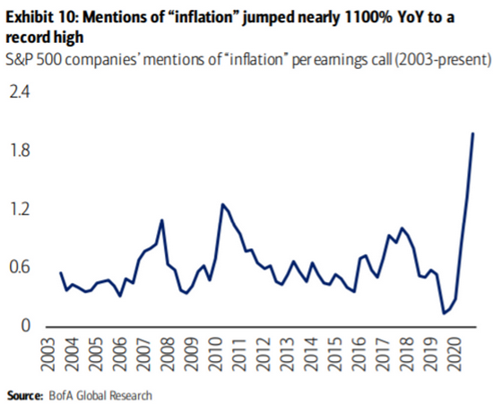 美银表示,利率每上升一个基点,股市可能下跌 20 至 30 个基点。换句话说,美银预计 10 年期国债收益率到年底将上涨 55 个基点,即 0.55%,这会导致标普 500 指数下跌 16.5%。