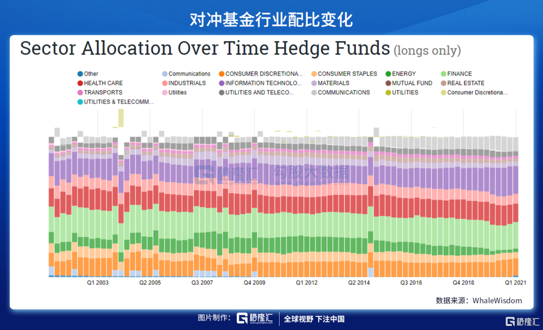 如图所示,机构大佬们的权益持仓呈不断增长的趋势,去年疫情以来更是近乎90°增长。在板块配比上,金融配置仍是不变的主题;而近些年来,科技配置的占比正逐步上升。