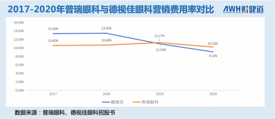 德视佳在招股书中解释说,销售费用激增主要是由于需要在中国、丹麦开拓市场。而也处于市场扩张期的普瑞眼科,不同于华厦眼科深耕厦门,何氏眼科冠绝内蒙古,其业务扩张倾向于在各个省会和一线城市多点式地展开,品牌影响力较为分散,因此同样也需要在营销方面加大投入,和德视佳的销售策略有重合之处。
