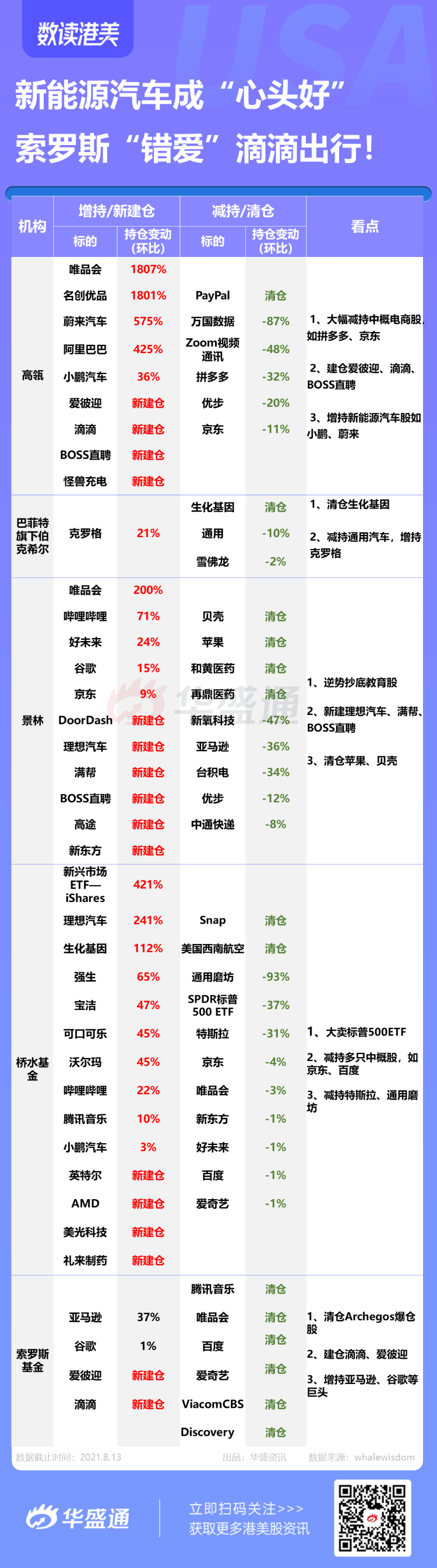 本周以来,高瓴、景林等机构的二季度13F报告已陆续发布!