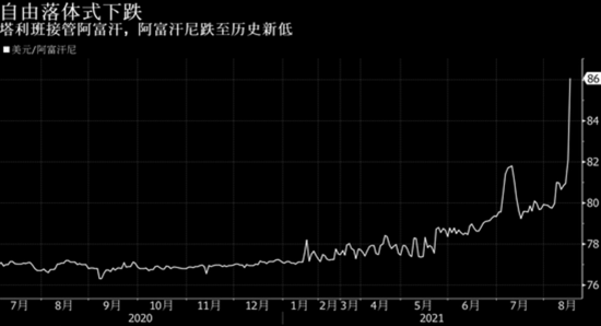 根据媒体汇编的数据,阿富汗尼周二一度下跌4.6%,至1美元兑86.0625的水平,连续第四天走低。阿富汗代理央行行长Ajmal Ahmady发布了一系列推文,称央行上周五获悉将无法再获得美元,限制了其货币供应能力,引发了进一步的恐慌。