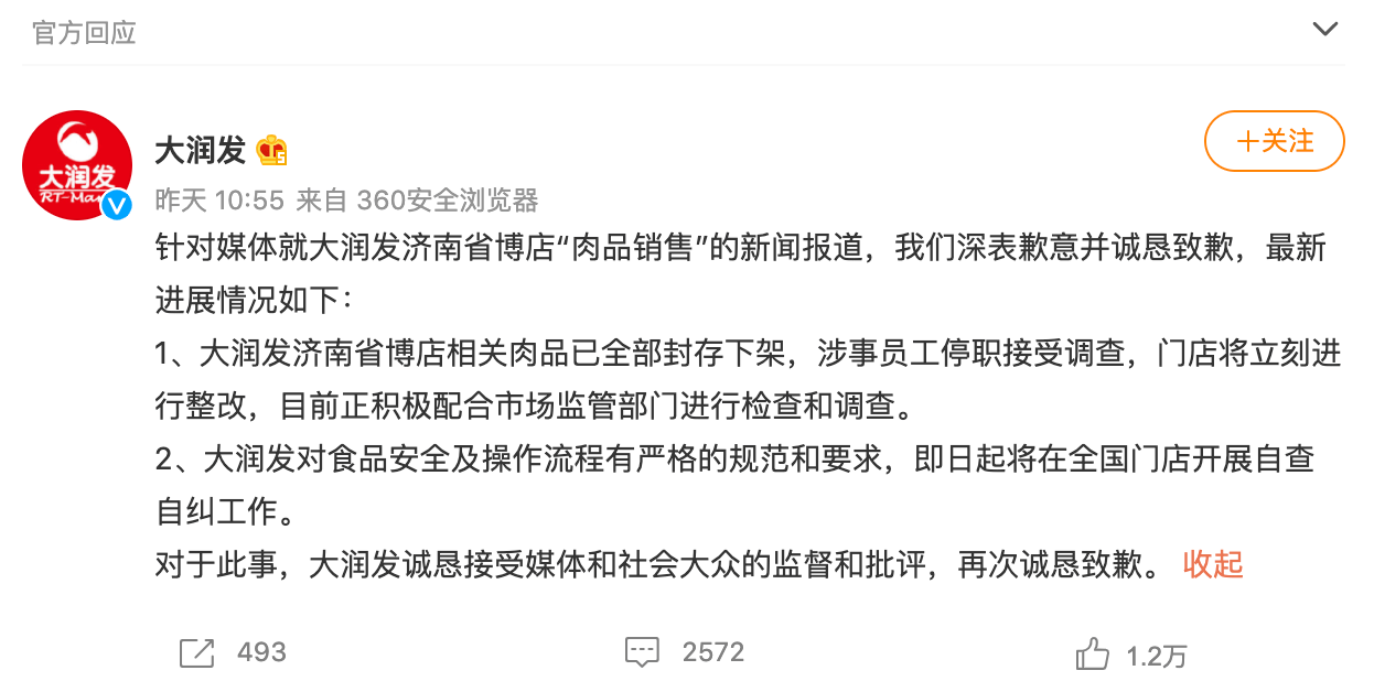 热搜一出,引起众怒,官方回复也无法平息消费者质疑。“这种道歉都有模版了吧?每年都得发个几次。”在大润发致歉声明下,有网友如此表示。