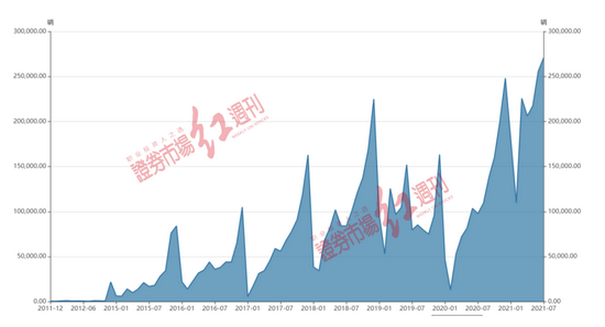 今年以来,新能源汽车销量进一步提速。据Wind数据显示,今年6~7月,中国新能源汽车月销量分别达到了25万辆、27万辆,再创历史新高。(见图4)