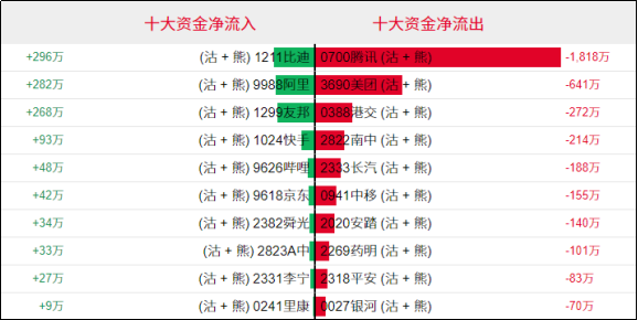 淡仓(认沽证及熊证)方面,周二比迪、阿里相关淡仓单日分别录得约296万、282万港元资金净流入;腾讯、美团相关淡仓单日分别录得约1818万、641万港元资金净流出。