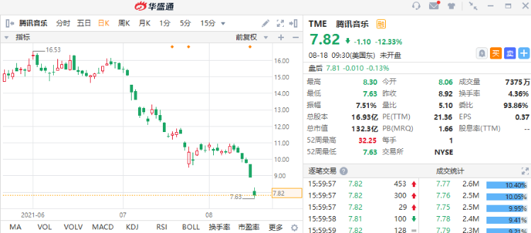 但资本市场不这么想。自7月24日以来,腾讯音乐股价已经从9.77美元/股,下跌超17%。