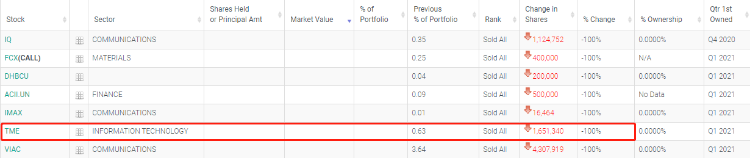 另外,根据金融巨鳄索罗斯基金管理公司递交的13F报告显示,该基金已经清仓腾讯音乐。