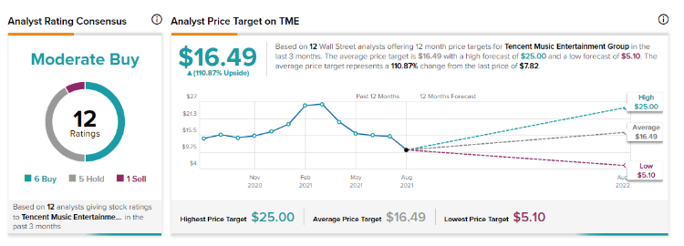 综合来看,华尔街机构中建议买入的分析师仍占据上风,腾讯音乐的平均目标价为16.49美元,意味着较当前水平存在110%的上行空间。