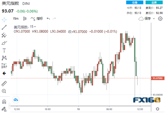 美联储公布会议纪要后,美元指数DXY短线下挫30点至93.02,非美货币走高,英镑/美元、欧元/美元短线上扬约40点。