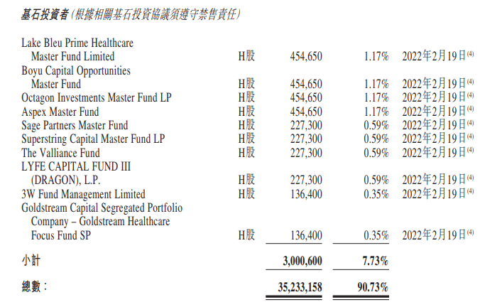 根据相关基石投资协议,该公司的基石投资者已认购合共300.06万股H股,合共相当于紧随全球发售完成后公司已发行股本约7.73%及全球发售的发售股份数目约45.45%,在两种情况下均假设超额配股权并无获行使。