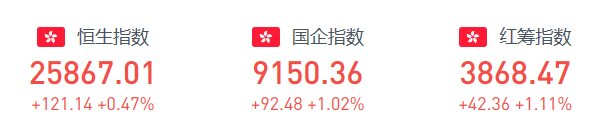 截至周三收盘,恒生指数涨0.47%,报25867.01点;国企指数涨1.02%,红筹指数涨1.11%。恒生科技指数涨0.13%,哔哩哔哩涨超3%,美团涨2.15%,腾讯涨0.28%。
