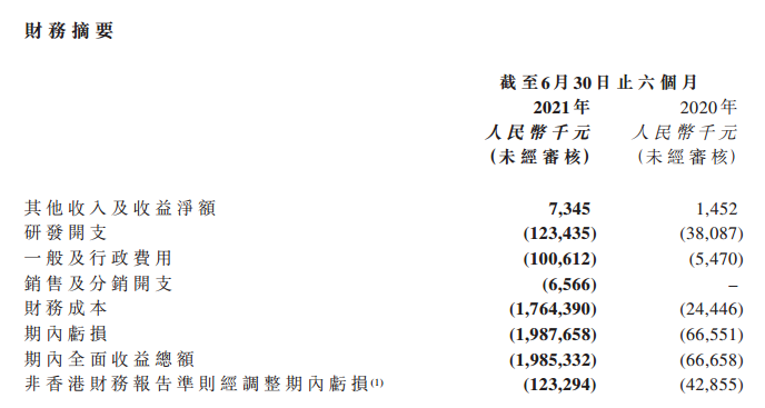 8月18日,兆科眼科发布中报,截至2021年6月30日止6个月,期内亏损约19.88亿元人民币,每股基本亏损7.02元,不派息。集团研发开支达约人民币1.234亿元,同比增加约223.9%。