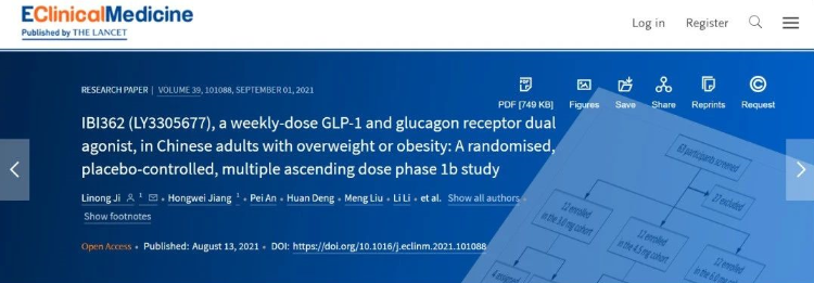 这是中国代谢领域首个在《柳叶刀》系列期刊发表的创新药物1期临床研究,也是是首个在中国人群中评估周制剂GLP-1R/GCGR双激动剂安全性与疗效的临床研究。