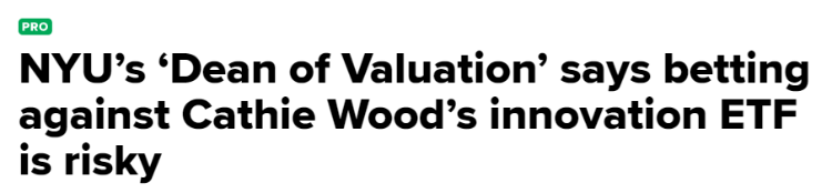 “宏观层面的故事可能是对的,但如果微观层面的故事是错的,你仍然会损失惨重。我认为,做空者现在正围绕着木头姐旗下ETF短期的疲软表现大做文章,但并不能保证它一定会成功,”Damodaran在接受采访时说。