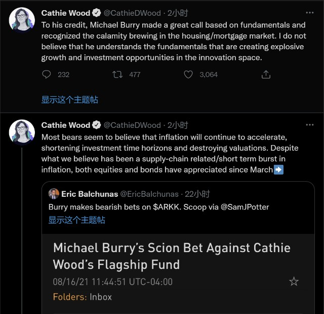 周二,木头姐也对Burry的做法进行了反驳。她在社交媒体上表示:“基于基本面分析,Michael Burry在次贷危机时期做出了出色的判断。但我不相信他了解在创新领域的爆炸性增长和投资机会。在我们看来,ARK致力于研究的创新领域,它们的种子是在互联网泡沫时播种下的。这些技术孕育了20多年,应该会在未来10年内改变世界。”