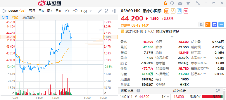 思摩尔国际(06969)将于今日盘后放榜,股价绩前抢跑,截至发稿,涨近4%。