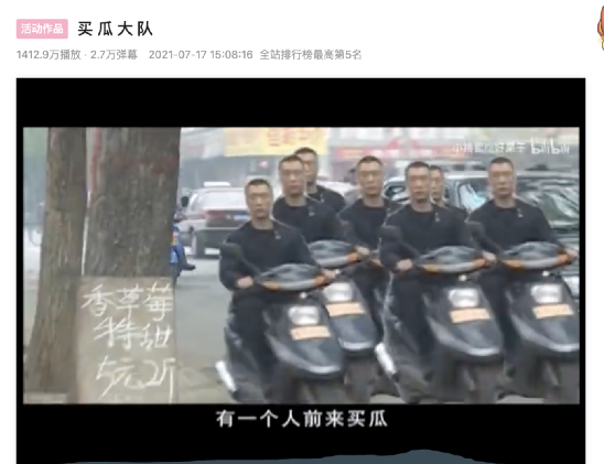 比如播放量1400w的《买瓜大队》中的刘华强,仿佛火影忍者十代目,直接使出影分身术,一行7人前去买瓜。