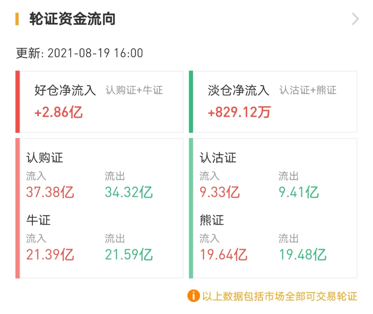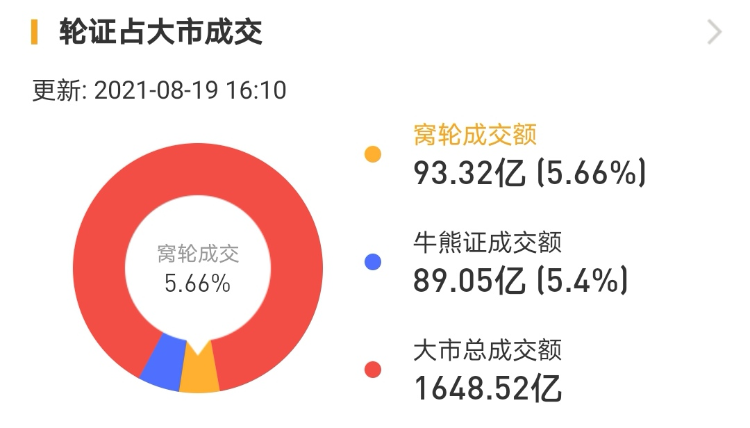 其中,窝轮总成交93.32亿港元,牛熊证总成交89.05亿港元。