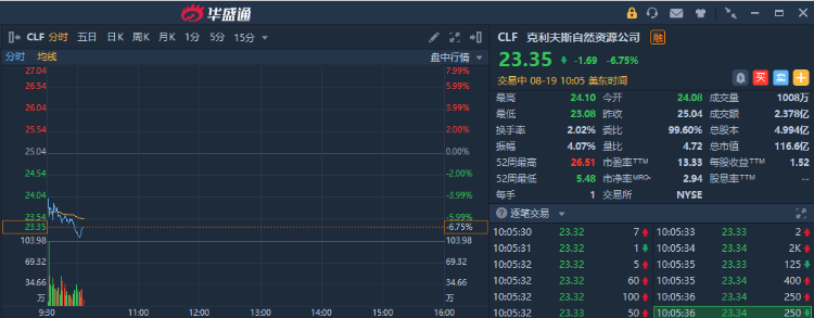 华盛资讯8月19日讯,美股盘初,美股钢铁股表现疲软。克里夫斯天然资源公司(CLF)跌超6%,美国钢铁(X)跌超5%,纽柯钢铁(NUE)跌超3%。