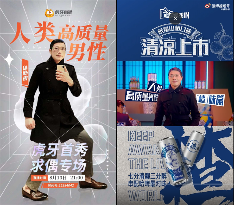 直播为其升温之外,近期徐勤根还接到了哈尔滨啤酒的广告片邀请。他的微博介绍也已经开始大方承接各种商务合作。
