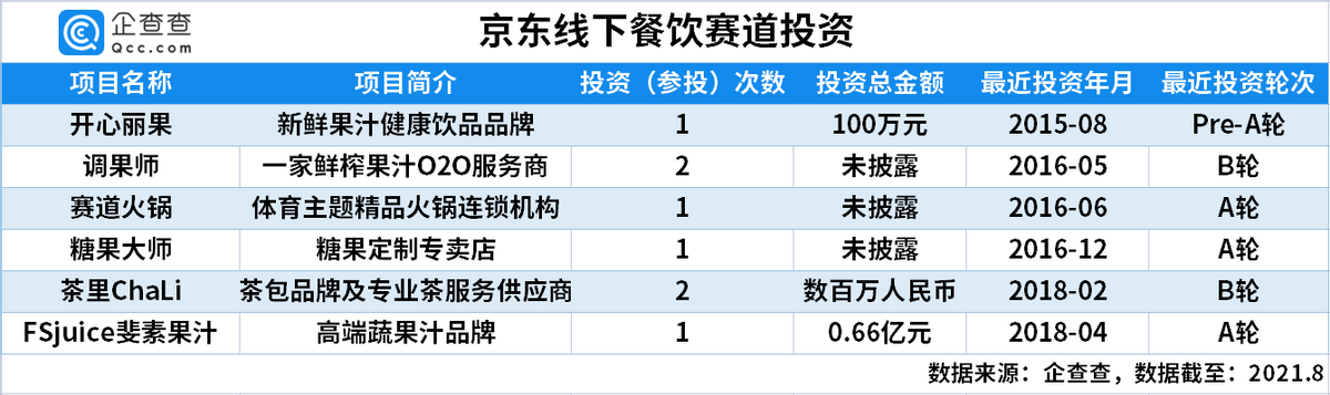 京东在2015-2018年,6次投资茶饮项目、1次投资火锅项目和糖果定制专卖店项目,且颇为偏爱早期投资,在项目选择上避开了头部,且投资金额普遍不大。京东后来不再偏爱线下餐饮赛道,2018年后则不再参投,属于浅尝辄止。