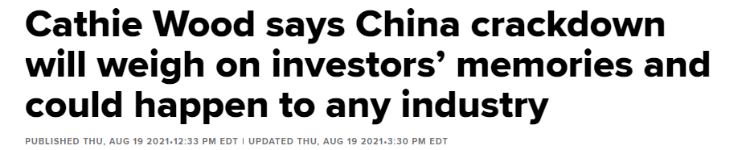 Wood表示,对于中国采取的监管措施,在投资者情绪遭遇重创的情况下,受影响的股票估计在短时间内较难迎来反弹。