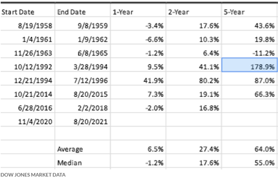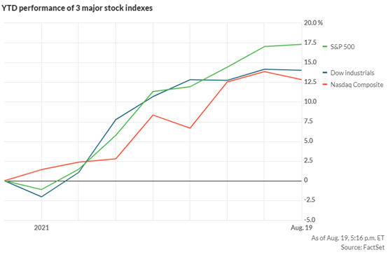 本周一道琼斯工业平均指数(DJIA)和标普500指数(SPX)分别创下2021年第35和49个历史新高。与此同时,与此同时,纳斯达克综合指数(Nasdaq Composite Index)较8月5日创下的纪录高点上涨了近2.5%。