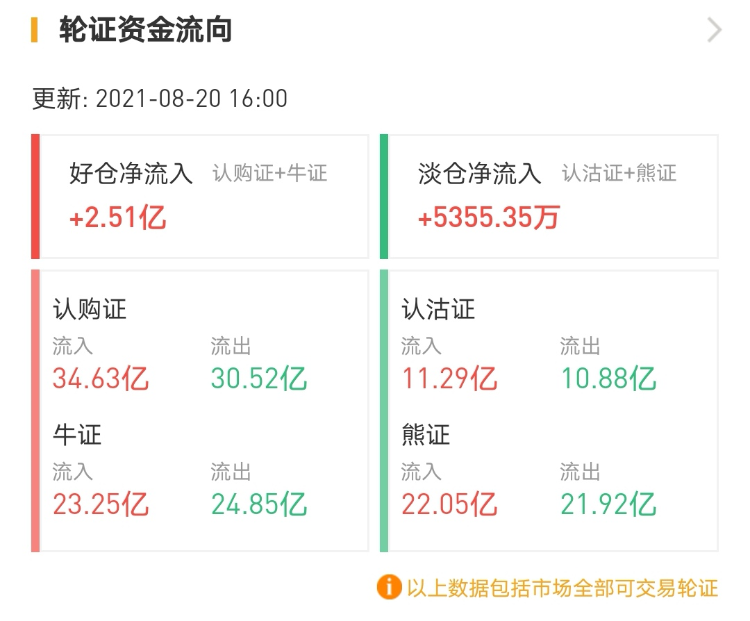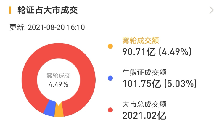 其中,窝轮总成交90.71亿港元,牛熊证总成交101.75亿港元。