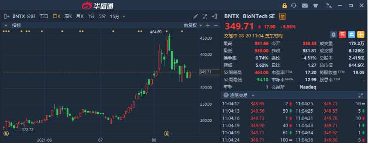 加通贝祥:将BioNTech SE(BNTX)目标价从240美元上调至450美元