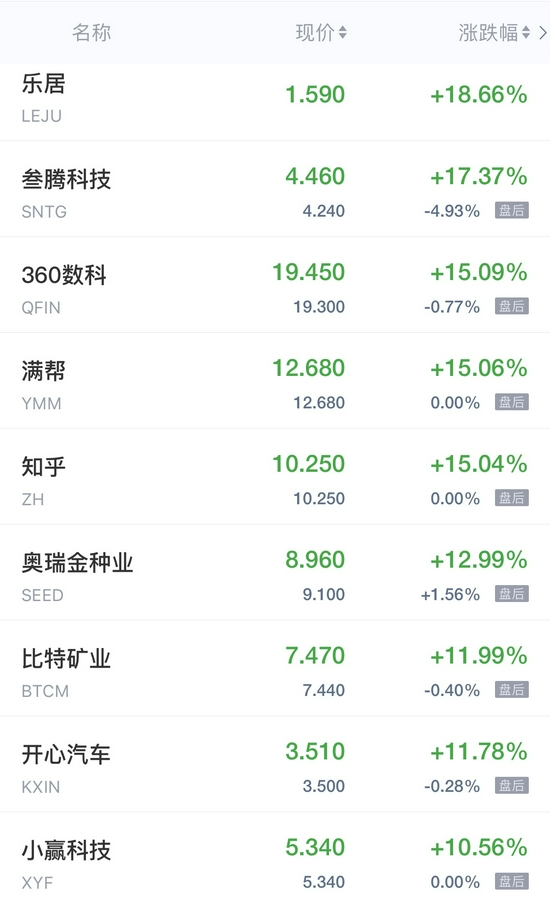 (截图来自新浪财经APP 行情-美股-中概股热门板块)下载新浪财经APP
