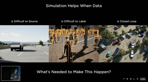 同时,特斯拉还开发了“仿真场景技术”,可以模拟现实中不太常见的“边缘场景”用于自动驾驶培训。在仿真场景中,特斯拉工程师可以提供不同的环境以及其他参数(障碍物、碰撞、舒适度等),极大提升了训练效率。