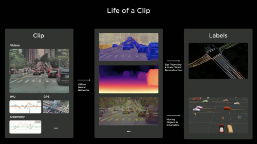 特斯拉拥有一支由世界各地人才组成的数据标注团队,规模在1000人左右。团队每天对视频数据中的物体在“矢量空间”中进行标注,在善于把握细节的人工标注和效率更高的自动标注配合下,只需要标注一次,“矢量空间”就能自动标注所有摄像头的多帧画面。这为特斯拉带来了上百亿级的有效且多样化的原生数据,而这些数据都会用于神经网络培训。