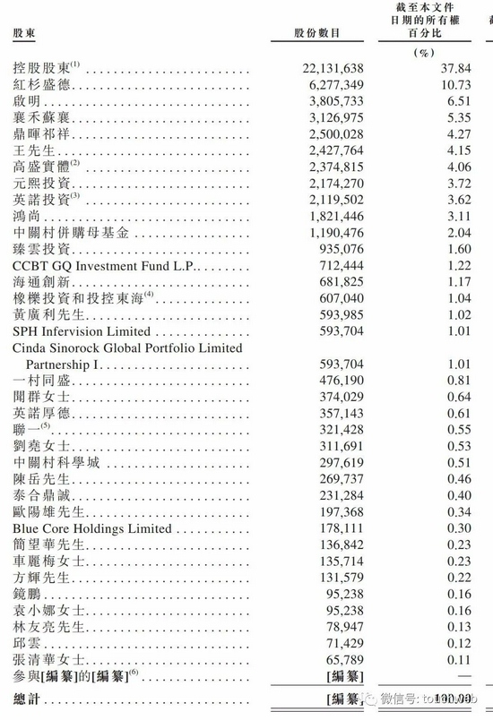 高盛实体持股为4.06%,元熙投资持股为3.72%,英诺投资持股为3.62%,中关村并购母基金持股为2.04%,黄广利持股为1%。