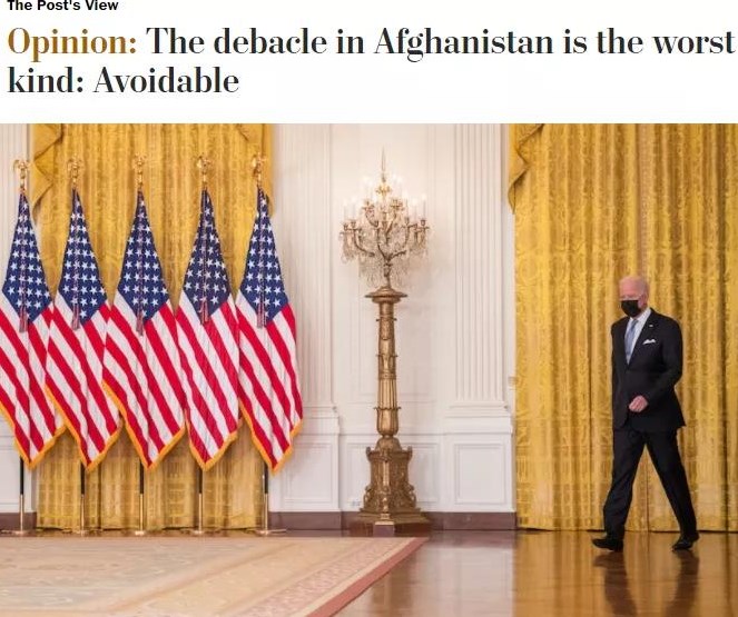 《华盛顿邮报》近日发表题为《阿富汗的崩溃是最糟糕的:它本可以避免》的社论,批评美国政府的一系列错误决策。