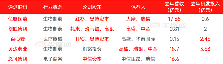 据港交所公告,目前还有有5只新股通过聆讯,分别为创胜集团、百心安、贝达医药、悠可集团和亿腾医药,后续将随时启动招股程序。