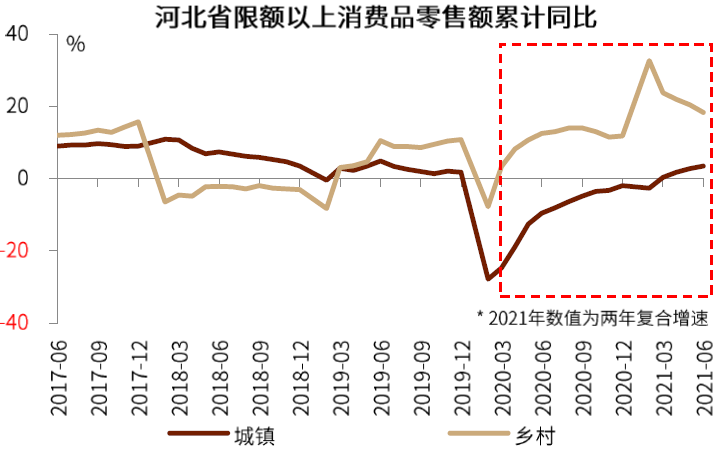 图表:疫情后,河北乡村限额以上消费好于城镇