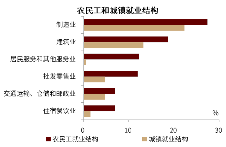 注:由于缺乏全国和其他各省的分行业城乡就业数据,此处以湖南省作为样本来进行考察。