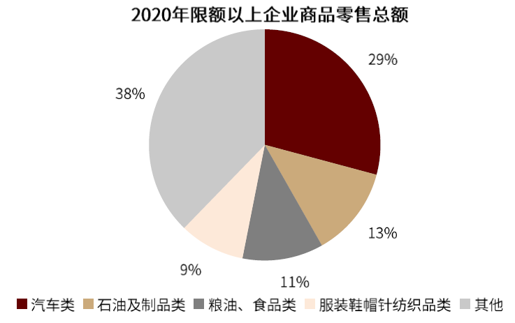 疫情之后,以餐饮为代表的线下服务消费受到持续压制。而餐饮收入占限额以下消费的12.6%,比占限额以上企业的比重高约7个百分点,拖累限额以下消费修复。与此同时,汽车类消费占限额以上消费约30%,疫情后在货币宽松、购车补助等政策提振下,汽车消费对限额以上消费形成支撑。此外,限额以上零售企业规模大、线上渠道发达,在线下商品消费向线上转移过程中也是更为受益的。