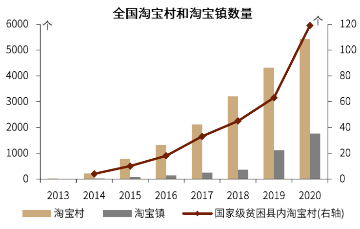 注:淘宝村是指活跃网店数量达到当地家庭户数10%以上、电子商务年交易额达到1000万元以上的村庄,淘宝镇是指拥有三个及以上淘宝村的乡镇街道。