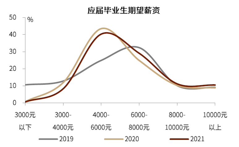 农民工、应届生等部分群体,更容易受到疫情的影响,他们的就业和收入情况,也会拖累消费改善。虽然农民工数量已基本恢复到疫情前的水平,但由于农民工就业结构相对更集中于居民服务、批发零售、住宿餐饮等行业,收入易受疫情扰动、波动较大。比如2020年上半年、2021年1季度,农民工收入都出现了明显的增长放缓。疫情后高校毕业生的就业和收入也不容乐观,无论是失业率还是期望薪酬,都和2020年疫情期间基本持平,并没有出现明显改善。
